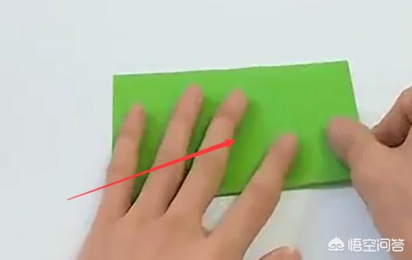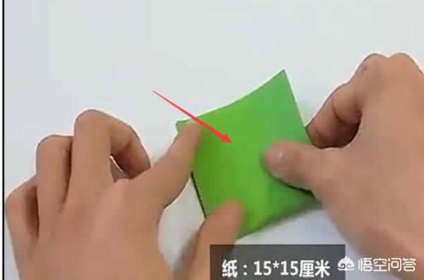 4、准备一张15*15厘米的彩色绿纸,先对折一边。