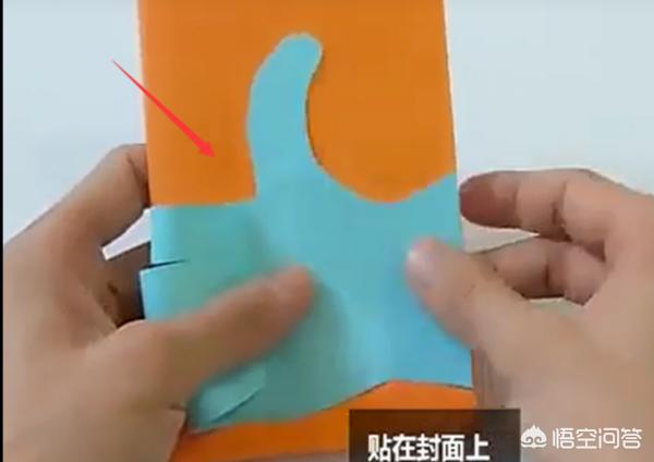 3、把最棒的手指,贴在封面上也就是贴在黄色彩纸,手势要横着贴。