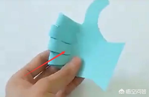 2、用固体胶把除大拇指外的四个手指粘起来,做最棒的手势。