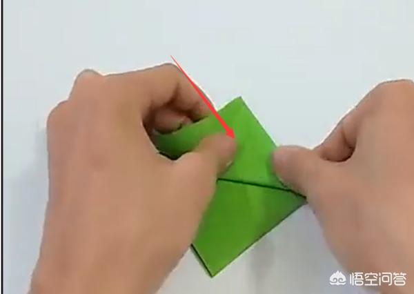 6、拿起一边对折,另一边也是一样,折出三角形。