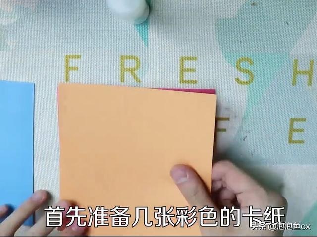 1、首先准备几张彩色的卡纸和固体胶,用固体胶将卡纸进行粘连,如下图所示。
