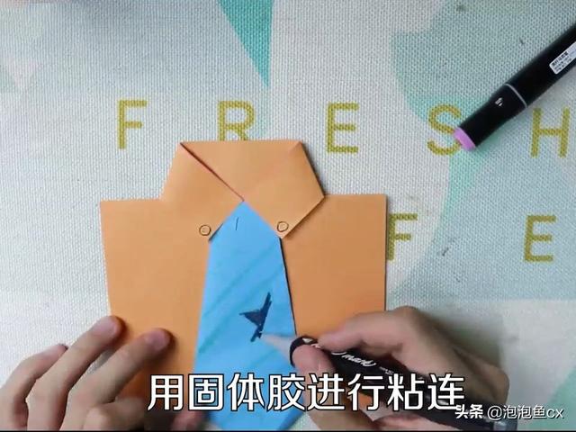 9、粘对边2个位置就可以,黄纸上写父亲节快乐。